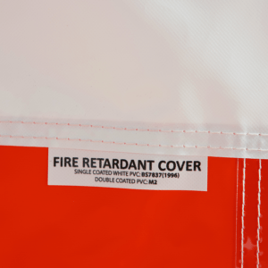 - Roter Sicherheitsstreifen und schwer entflammbares Gewebe nach DIN 4102 B1.